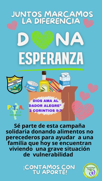Te invitamos a que te unas a la campaña Dona Esperanza Dios Ama al dador Alegre (2corintios, 9:7) y recuerda que "Juntos Marcamos la Diferencia"